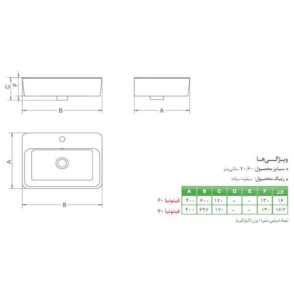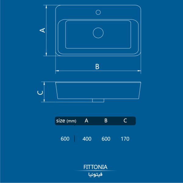 روشویی روکابینتی کرد مدل فیتونیا با ابعاد مناسب خود، برای استفاده در فضاهای کوچک و متوسط ایده‌آل است. این روشویی با طول و عرض متناسب، فضای زیادی را اشغال نمی‌کند و به راحتی در انواع سرویس‌های بهداشتی قابل نصب است. این ویژگی باعث می‌شود که فیتونیا انتخابی عالی برای کسانی باشد که به دنبال یک روشویی جمع و جور و کارآمد هستند.