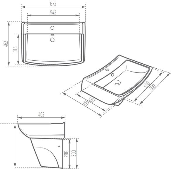 روشویی نیم پایه مروارید مدل کاتیا 68