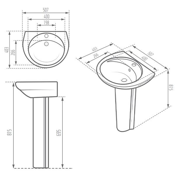 روشویی پایه دار مروارید مدل دیاموند 50