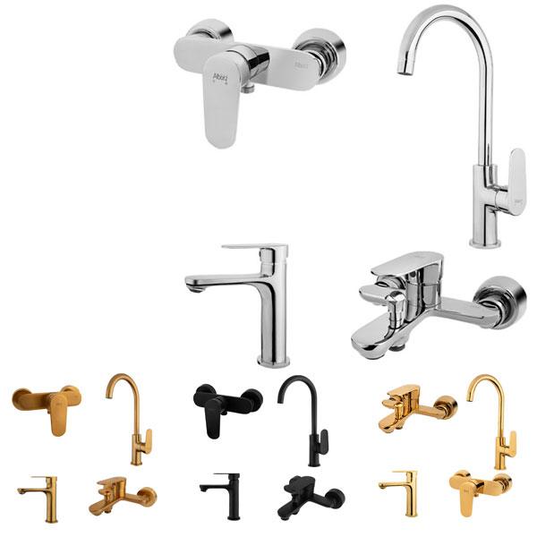 - رنگ ست شیرآلات:استیل مات, مشکی, سفید, طلایی, طلایی مات, کروم