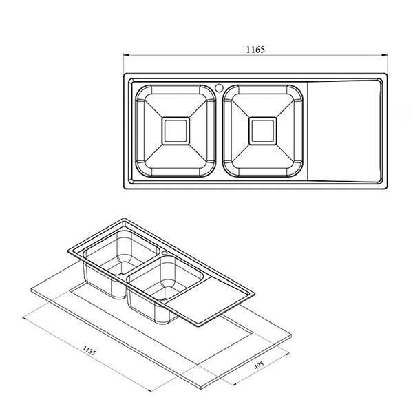 سینک ظرفشویی توکار کن مدل 8152