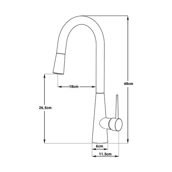شیر ظرفشویی وانیا با طراحی مینیمال و منحنی‌های نرم، جلوه‌ای خاص به آشپزخانه می‌دهد. فرم استوانه‌ای بدنه و اهرم ارگونومیک، حس ظرافت و سادگی را در کنار عملکرد عالی ارائه می‌کند.