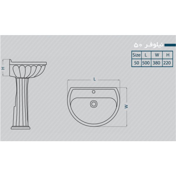 روشویی پایه دار گلسار مدل نیلوفر ۵۰