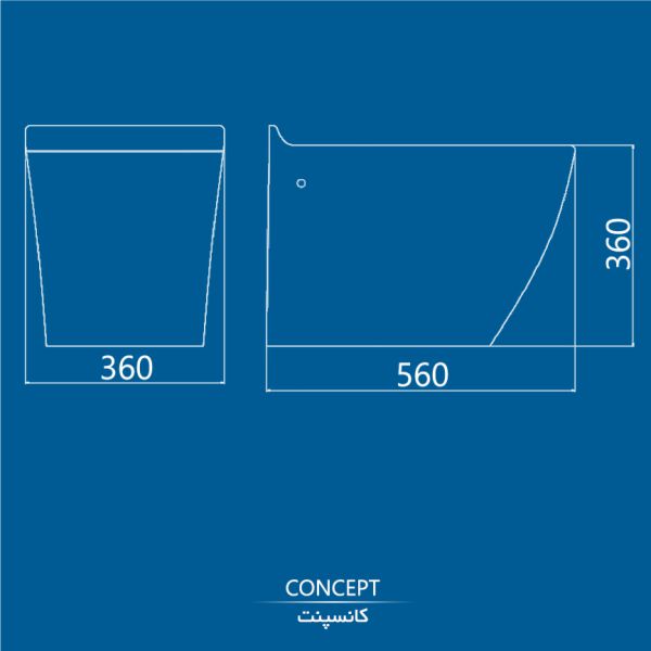 - ابعاد توالت والهنگ : 560 × 360 × 360 میلیمتر