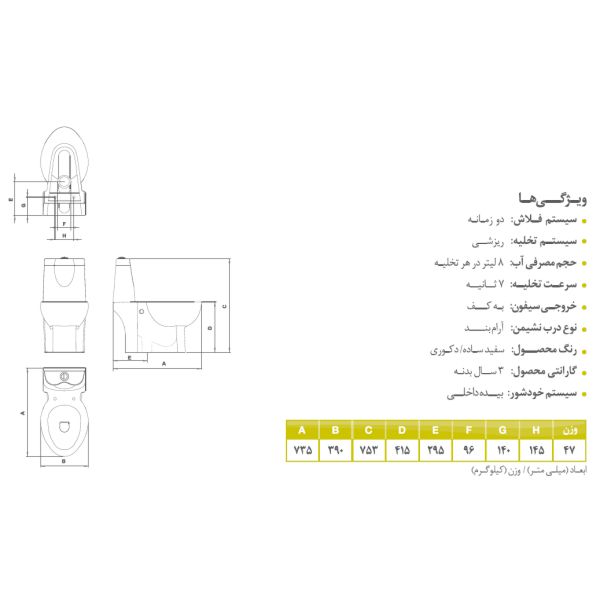 - سرعت تخلیه توالت فرنگی (ثانیه):7